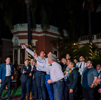 Más tarde, la celebración continuó en la Casa de los Abanicos, un lugar lleno de carácter y estilo que se convirtió en el escenario perfecto para una recepción vibrante, llena de luz, música y alegría.